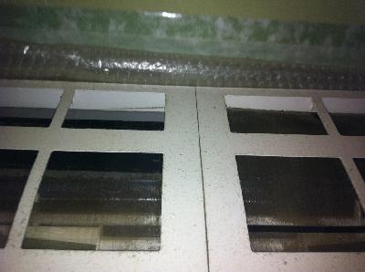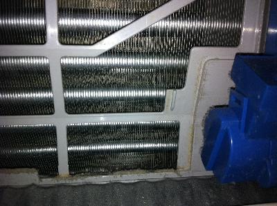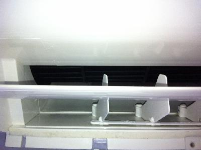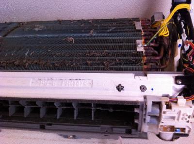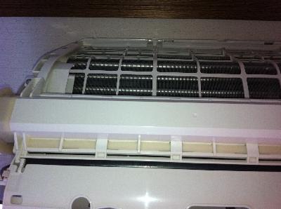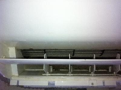 写真では、確認難しいかもしれませんが、お掃除機能付エアコンは、環境が厳しい場所(タバコ、料理、湿気等)では、フィルターも内部も単機能エアコンと同様に内部は汚れます。